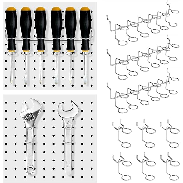 Amazon Com 6 Pieces Pegboard Screwdriver Holders Organizer Pegboard Plier Holders Stainless Steel Peg Board Tool Utility Hooks Accessories Shelving Display Multi Ring Tool Organizer Racks For Shop Store White Industrial Scientific